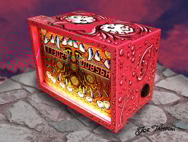 Joe is also deeply influenced by the psychedelic art of the 1960s and 70s, including the groundbreaking work of Wes Wilson and Stanley Mouse. This heritage shows in his bold use of flashy colors and high-contrast, eye-popping palettes.